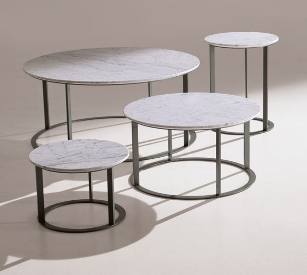 Acabado: Tapa de mármol BLANCO MACAEL. Estructura metálica en NEGRO.