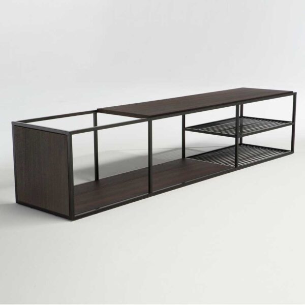 Acabado: Tapa madera en DM chapada en roble en BLACK . Estructura metálica en NEGRO.